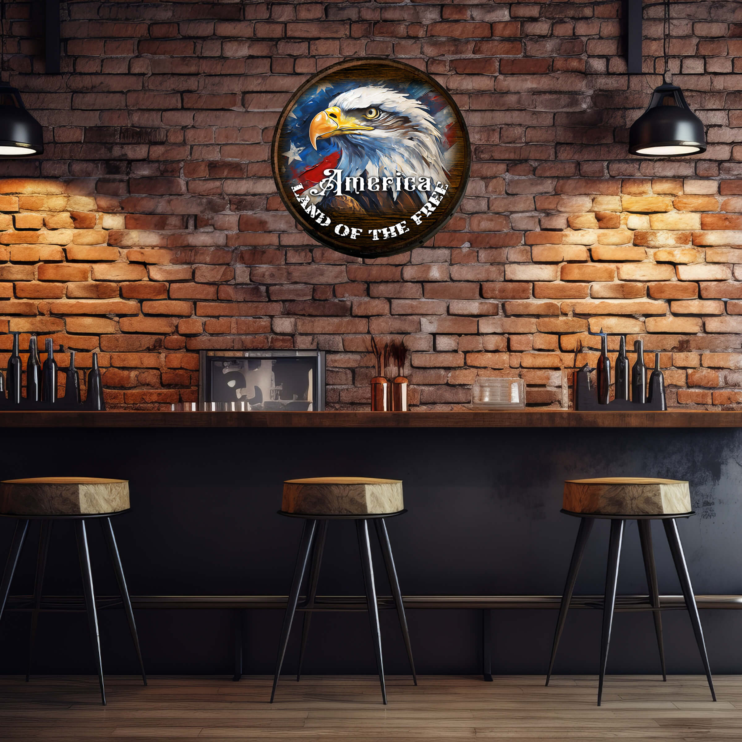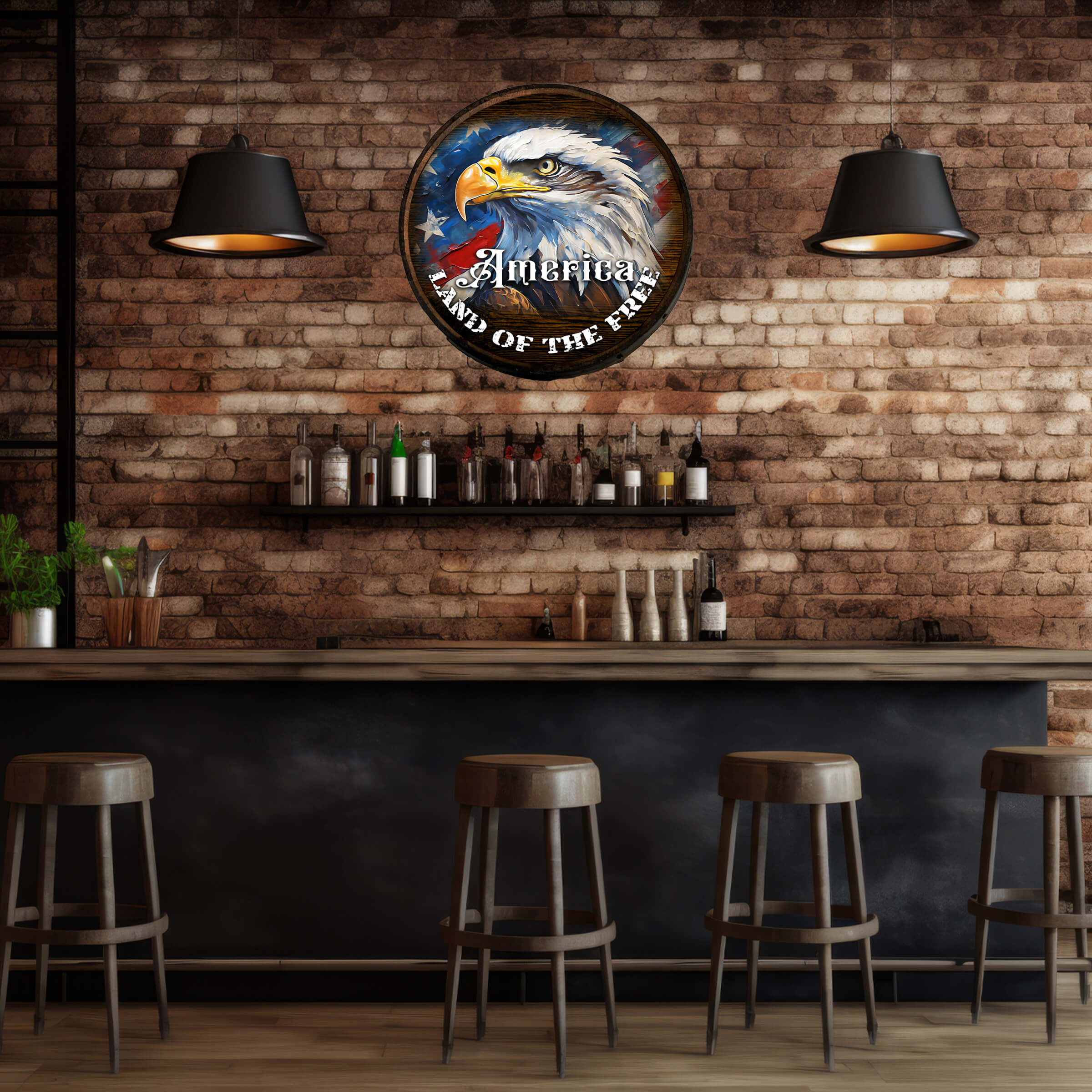 Patriotism is a deep love and loyalty towards one’s nation, coupled with a sense of solidarity with fellow patriots. It involves upholding the core values of life, liberty, and the pursuit of happiness, as outlined in the Declaration of Independence, where it is stated that these rights are inherent to all individuals and should be safeguarded by the government for every citizen. The America – Land of the Free wooden barrel, meticulously crafted from solid hardwood and stained with color-pigmented dye, adds a vintage charm to any setting. The graphic of an old-time barrel aging room enhances the cozy ambiance, making it a perfect addition to your home, business, or venue. Proudly made in the U.S.A., this sign is a durable and timeless piece that will surely be treasured for generations to come.